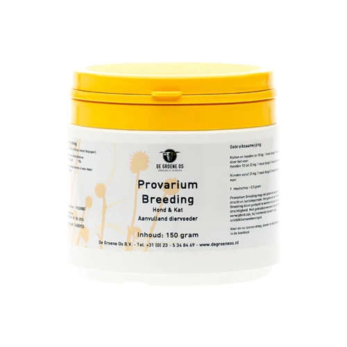 Groene Os Provarium Breeding wordt (na overleg met uw dierenarts) o.a. gegeven wanneer de teef of poes niet drachtig wordt of bij teven en poezen die langdurig of onregelmatig loops dan wel krols zijn. Ook bij een abnormaal verlopende cyclus, waarbij de hond drachtig lijkt terwijl ze dat niet is kan het worden ingezet. Bij reuen en katers werkt Provarium Breeding dempend en kan het worden ingezet bij overmatige ‘driften’ en agressiviteit.
