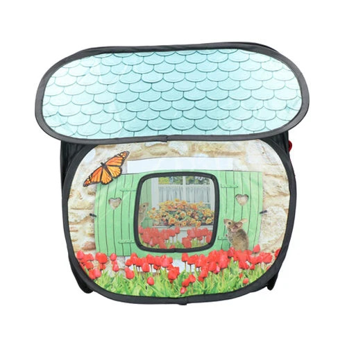 - Het tweedelige huisje is gemakkelijk in elkaar te zetten