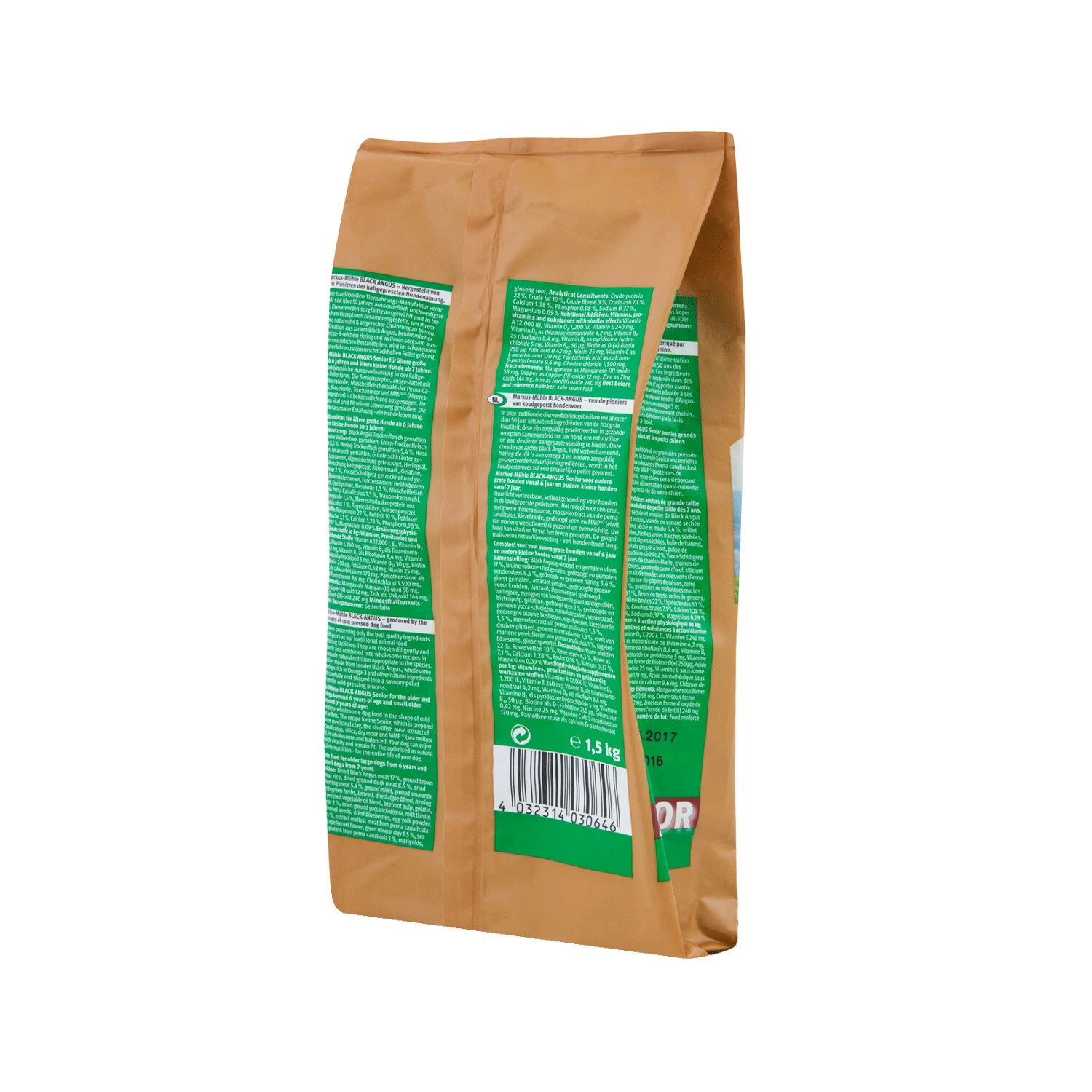 De producten uit de Black Angus lijn van Markus-Mühle bestaan uit een combinatie van eersteklas dierlijke eiwitten, de beste koolhydraten en zorgvuldig geselecteerde plantaardige componenten. Deze compleet voeding is zo divers als de natuur en hierdoor bijzonder aangenaam. Daarom neemt Markus-Mühle de natuur ook als goed voorbeeld voor het recept. De ingrediënten zijn puur natuurlijk, waardoor er een onvergetelijke smaaksensatie ontstaat. Ook worden deze ingrediënten zorgvuldig geselecteerd en door onafhankelijke laboratoria gecontroleerd, om er zeker van te zijn dat ze aan de strenge kwaliteitsnormen van Markus-Mühle voldoen. Black Angus is speciaal ontwikkeld voor puppy’s, volwassen honden en senioren.