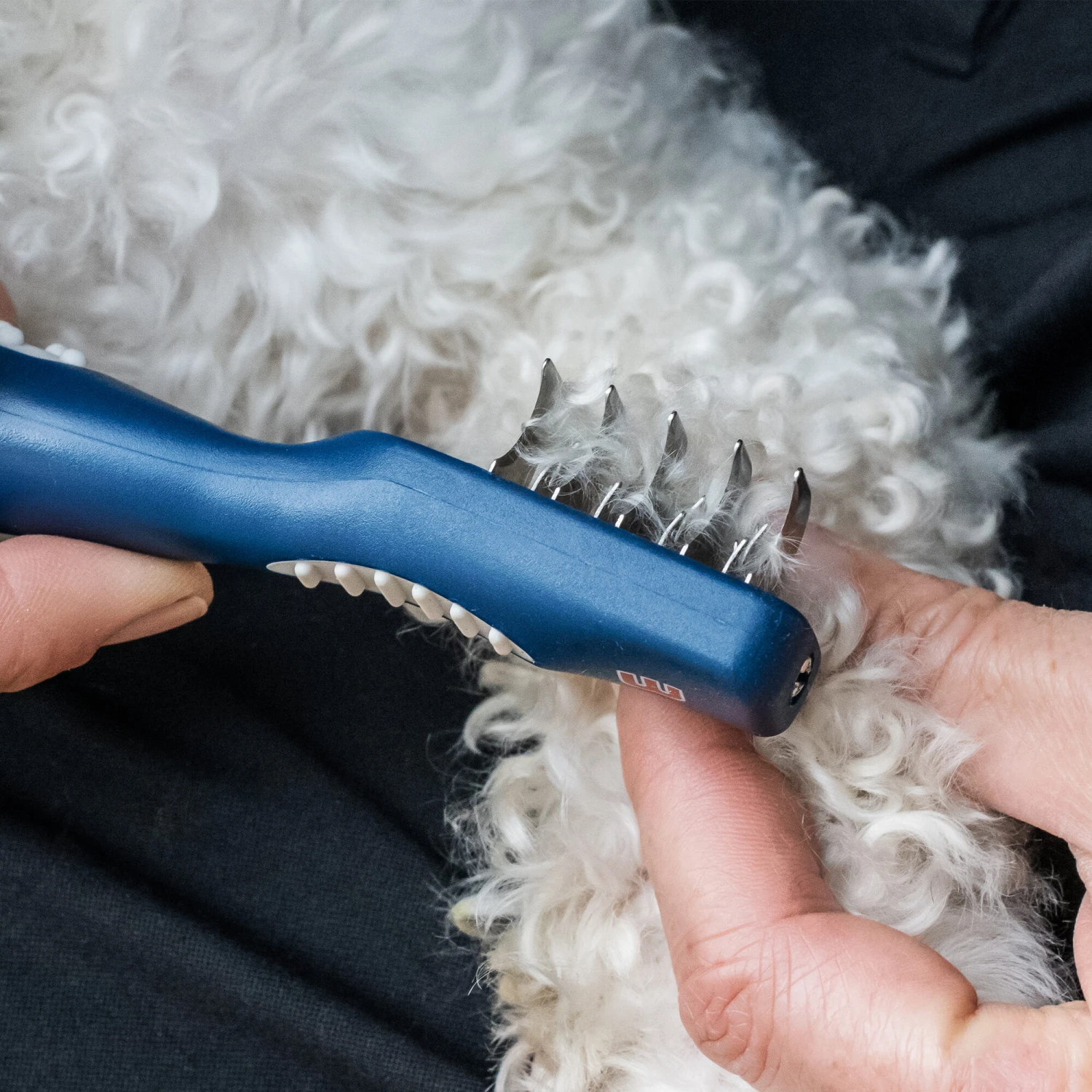 Heeft u een poedelkruising viervoeter? Deze borstel van Mikki is speciaal ontworpen voor deze hondenrassen. De vacht van poedelkruisingen, zoals bijvoorbeeld Labradoodles, Cockapoo’s of Golden Doodles, vereist professioneel onderhoud en professionele verzorging. Wanneer u de vacht niet regelmatig goed verzorgt, kan dit uw viervoeter oncomfortabele situaties en onnodige stress bezorgen.