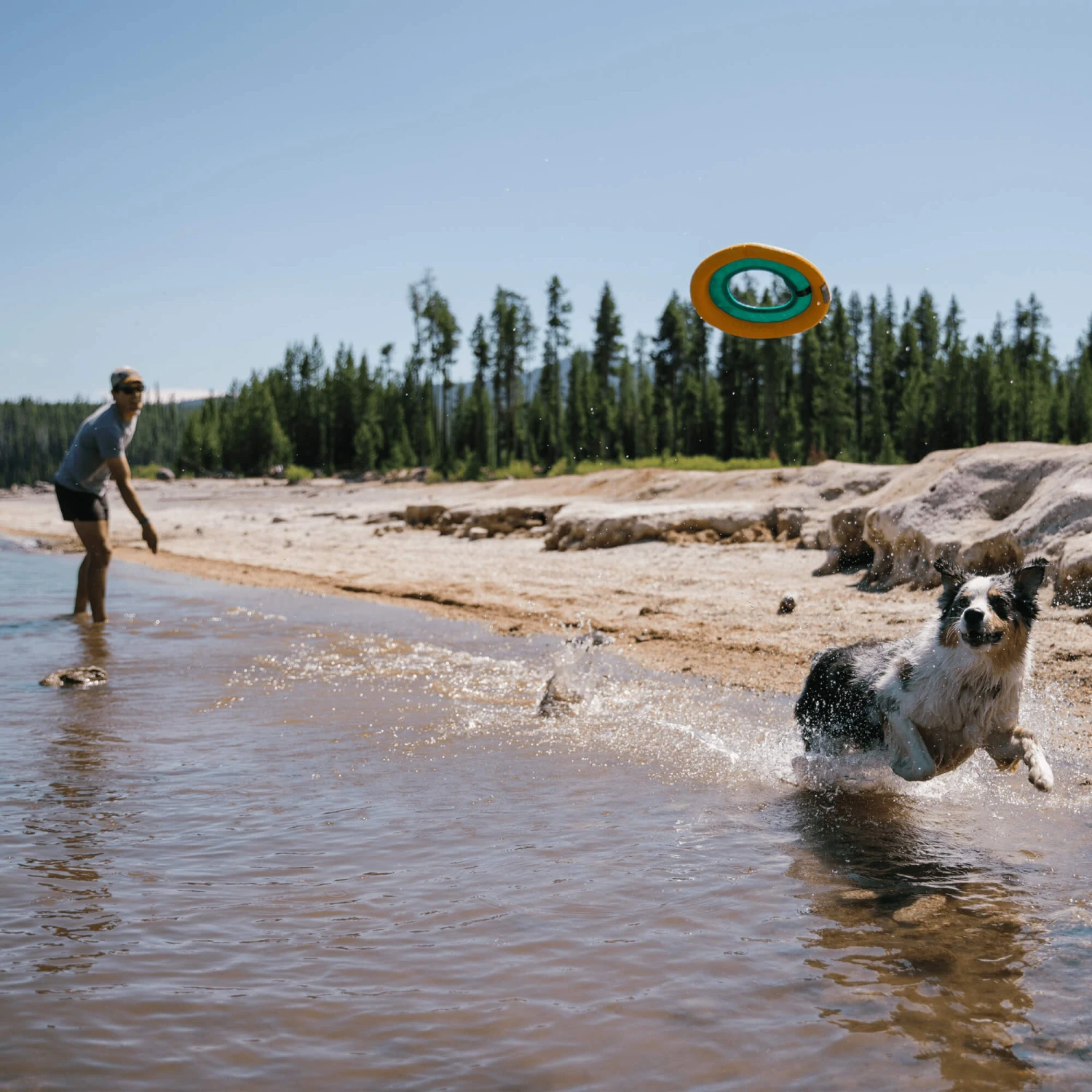 Kent apporteren voor uw hond ook geen grenzen? Leuk! Maar soms ook vervelend omdat u de speeltjes telkens kwijt raakt; in het water, in de sneeuw… Ruffwear Hydro Plane Floating Throw Toy blijft perfect drijven op bijvoorbeeld water, maar ook op sneeuw! De zachte constructie is perfect voor honden die apporteren aan het leren zijn. Door het ontwerp en de flexibiliteit is deze ring ook geschikt voor een spelletje touwtrekken. Ruffwear Hydro Plane Floating Throw Toy is beschikbaar in de maten M (23 cm) en L (30,5 cm) en in de kleur Aurora Teal.