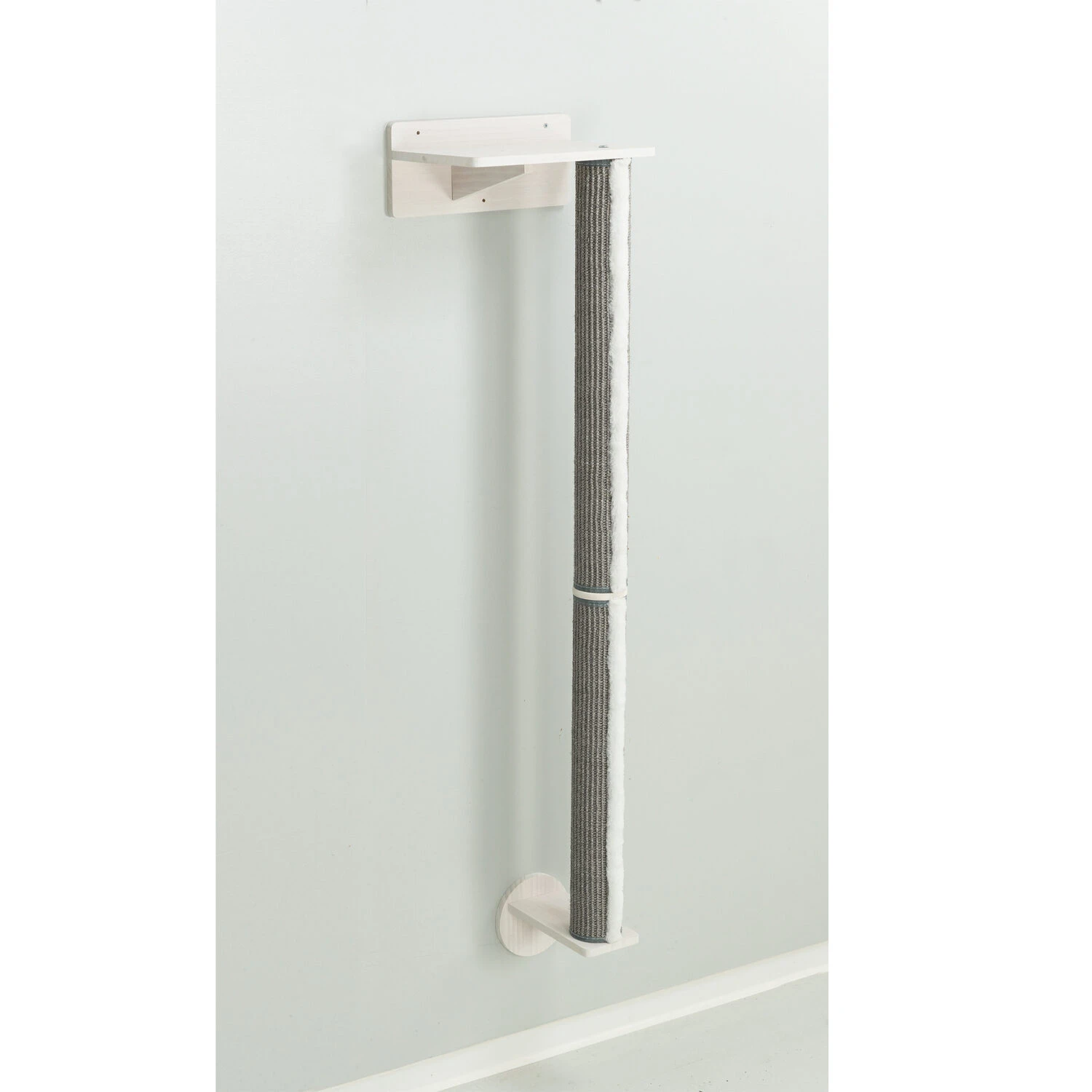 De Trixie Muur-Set 1 Katten is als het ware een soort speeltoestel voor uw huistijger. Zo heeft deze Muur-Set 1 een plateau waar uw kat op kan klimmen, en een lange cilinder met sisal bekleding, wat dient als krabpaal, waar hij of zij lekker de pootjes in kan zetten. De set bestaat uit een bovenste- en onderste muurbeugel, twee cilinder-stukken met sisal bekleding en een verbindingsschijf.