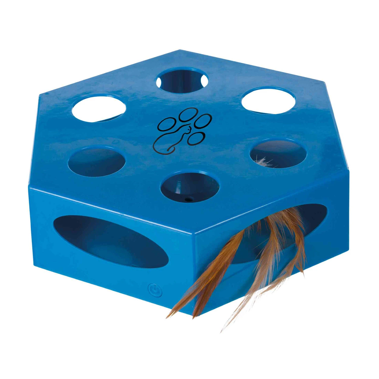 Is uw kat een echte jager? Daag hem of haar dan uit met de Turning Feather van Trixie. Dit leuke kattenspeelgoed van kunststof heeft een veer die heen en weer zwiept. Doordat hij stopt en verandert van richting, is het extra leuk om op te jagen! Dit speelgoed houdt niet alleen je kat actief, maar stimuleert ook nog eens het jachtinstinct. Het spelen met de Turning Feather wordt nog leuker als deze wordt gevuld met beloningssnoepjes.