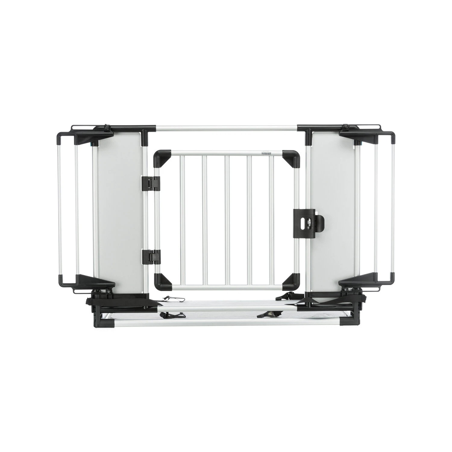 Met het Trixie Universeel Achterhek neemt u uw trouwe viervoeter overal veilig mee naar toe! Het achterhek past in in de bagageruimte van bijna elk type auto en stelt u in staat om jouw hond veilig van A naar B te verplaatsen. U plaatst het achterhek in de kofferbak en deze is traploos in de breedte aan te passen. Ook kan u de hoek van het hek aanpassen om het geheel goed passend te maken, net zoals de hoogte waarop u het deurtje monteert: deze kan op twee hoogtes worden geplaatst