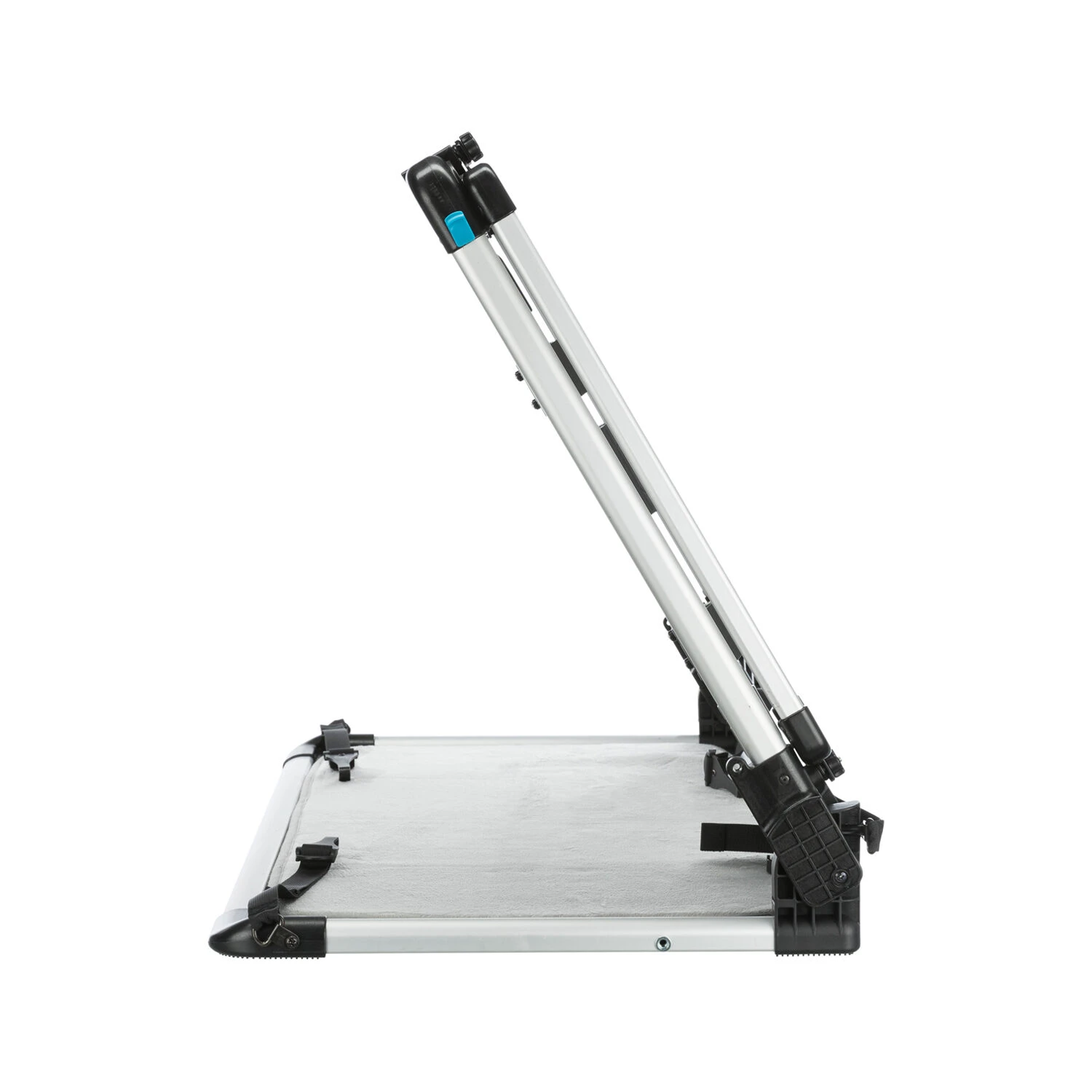 Met het achterhek kan de gehele kofferbak als ligoppervlak gebruikt worden door uw hond. De bodemplaat is voorzien van klittebandpootjes, waardoor het gehele hek stevig op zijn plek blijft staan. De slipvaste ligmat is wasbaar in een wasmachine op maximaal 30 graden Celsius. Het Trixie Universeel Achterhek is gemaakt van aluminium, hardboard en kunststof materialen en wordt geleverd met vier bevestigingshaken. Ook heeft het deurtje een sleuf voor een hangslot, het slot zelfs is niet inbegrepen. De breedte is aan te passen van 94 tot 114 centimeter, de hoogte is 69 centimeter en de diepte is 53 centimeter. Kijk uiteraard goed naar de afmetingen van uw kofferbak en controleer of het geheel past. Het hek is geschikt voor de meeste hatchbacks, stationwagons en SUV’s.
